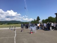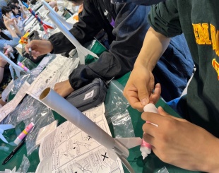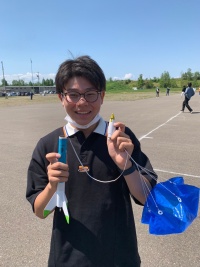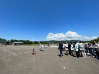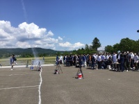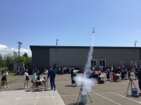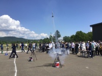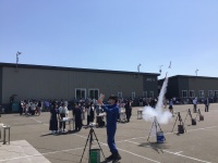 講話後、試行錯誤して1人1基 組立てたロケットを発射します。うまく打ち上がるでしょうか。