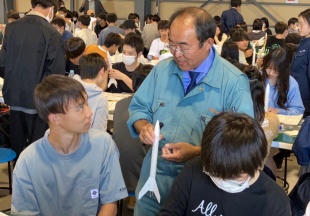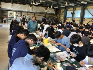 予定通り植松電機さんに到着し、植松社長から貴重なお話を伺いました。熱いメッセージを受け取り、涙ぐむ生徒の姿もみられました。