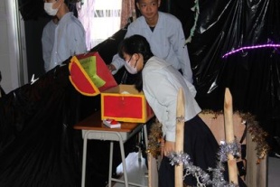 1年E組 廃病院~亡き少女の願い~(4年4組との合同展示)