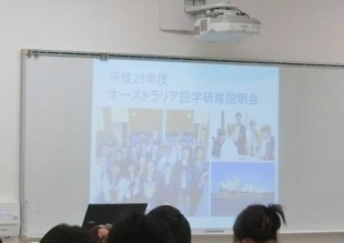2017年05月13日(土) オーストラリア語学研修 < 国際交流(研修) < 過去のニュース オーストラリア語学研修 説明会 本日午後、平成29年度オーストラリア語学研修に関する説明会が実施されました。 多数のご参加、有り難うございました。 貴重な体験、存分に活かしてくださいね。