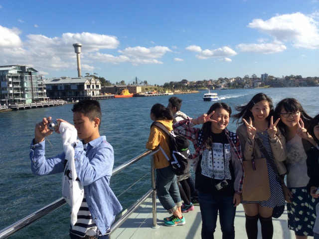 2015年08月09日(日) オーストラリア語学研修 < 国際交流(研修) < 過去のニュース 2015オーストラリア語学研修 12日目 シドニー2日目。午前はシドニー水族館からシドニーワイルドライフワールドを楽しみました。 そして午後からは生徒の皆が楽しみにしていたシドニー湾クルージング。約2時間のクルージングから観るダーリングハーバーやシドニーのシティ部分は最高でしたね。 明日は早朝4時30分にホテルを出発して、6時の便に乗り、 ケアンズを経由して関西空港へと向かいます。