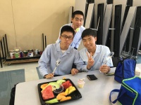 今日は1人の生徒が誕生日ということで、ESLの先生たちが大きなケーキを用意してくれて、みんなでお祝いしました。ホストファミリーが用意してくれるランチボックスは生徒たちには大きく、また甘いお菓子や、フルーツがたくさん入ってます。カスタードクリームが入っててどうしていいかわからないと言ってたA君にフルーツにつけるんだよとB君がアドバイス。すっかりカナダスタイルの食べ方を身につけてる生徒たちが増えてきました。感想はどんなフルーツもカスタード味に負けてしまうそうです。カスタード味でメロンの食感とか言いながら楽しんで食べていました。