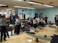 2016年08月03日(水) バンクーバー語学研修 < 国際交流(研修) < 過去のニュース カナダ研修7日目 午前中は予定通り3時間ESLの授業を受けましたが、午後は雨天のため、湖畔散策ではなくボーリングへ。カナダのボーリングは日本とは違ってピンが5本で間が空いていて、またボールも小さいので難しいのです。バディと一緒に対決したり、面白い投げ方を編み出したりと、生徒たちは楽しんでいるようでした。ちなみに5本ピンのボーリングはイギリス式で10本ピンがアメリカ式だそうです。