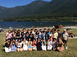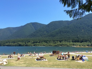 今日は午前中授業を受けた後、午後からはバスに乗ってAlouette lakeに湖畔ツアーに行きました。ビーチや芝生には大勢の人達が集まり、楽しいひと時を過ごしています。