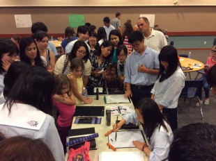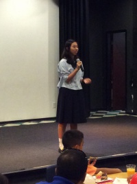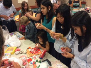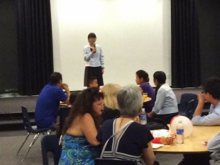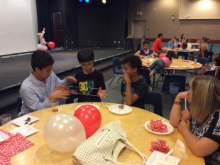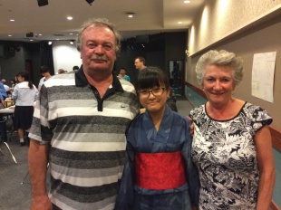 19時30分、フェアウェルパーティが始まりました。ファミリーがたくさんのデザートを持ち寄ってくれました。まず初めに、生徒2名が代表スピーチを立派にやり遂げてくれました。その後、日本文化の紹介をしながらの歓談タイムに入りました。ここでも一番人気はやはり、書道でした。最後に修了証書を受け取り、開智賛歌を合唱しました。楽しい時間はあっという間に過ぎました。今夜はホストファミリーと過ごす最後の夜です。素敵な時間を過ごしてほしいですね。