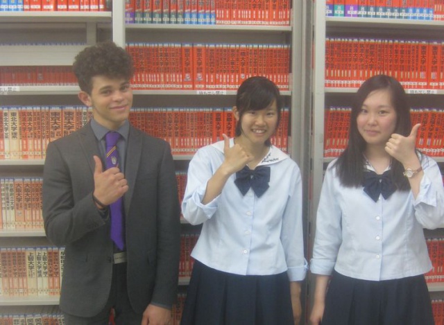 2015年05月26日(火) DGS交流派遣プログラム < 国際交流(研修) < 過去のニュース Dartford Grammar School 交流派遣プログラム 英国の交流校「Dartford Grammar School 」との交流派遣プログラムが始まりました。両校の代表生徒を互いに派遣し、ホームステイしながら学校生活を体験するプログラムです。 DGS代表生徒: Noah Oudkerk君 本校代表生徒: 丸山美佳さん(5年2組) 一ヶ月間、5年2組に所属しながら生活し、北海道への修学旅行にも参加する予定です。 画像は、左からNoah君、丸山美佳さん、昨年度代表生徒の松藤沙奈さん