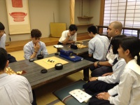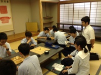 続いて、囲碁部、将棋部では、和歌山県随一の囲碁の名手、高校3年生の生徒のご指導の下、実際に囲碁を一局。お相手はECSメンバー2人と先生! 1対3にもかかわらず、先生たちも感心するほどの名勝負を打ってくれました。囲碁部、将棋部の皆さん、本当にありがとうございました。