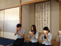 最後に、茶道部では、日本茶をいただいてから、畳の上での歩き方や所作について茶道部の先生や部員たちにご指導いただきました。日本でしか学び、体験することができないような貴重なひと時になったのではないでしょうか。茶道部の先生方、部員の皆さんどうもありがとうございました。
