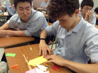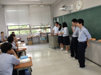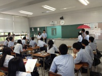 2015年06月13日(土) DGS交流派遣プログラム < 国際交流(研修) < 過去のニュース DGS交流派遣プログラム2015 at 3年B組 !! DGS交流派遣プログラムも今年で2年目!本年度は前年度に勝るとも劣らぬ最高のイベントが盛りだくさん。 そんな中、先日6月12日(金)の6時間目、Noah君が高校3年生B組の皆さんのご招待で授業に参加しました!B組の皆さんは、これまで磨き上げた英語力を最大限に発揮し、英語で様々な日本文化について紹介してくれました。 七夕や節分について体験を交えた交流ができ、Noah君とB組の生徒達、双方が非常に学び多き1時間となったのではないでしょうか。3 - B の皆さん、先生、本当にありがとうございました。