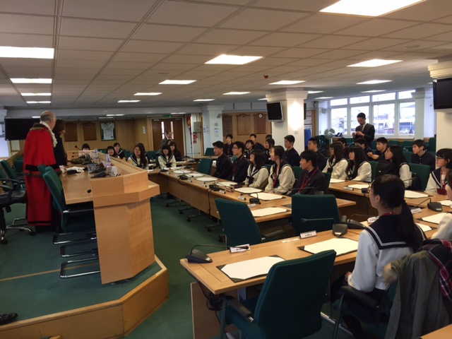 2016年03月22日(火) 英国研修 < 国際交流(研修) < 過去のニュース 2016英国研修(3) 本日からいよいよDartford Grammar Schoolにて授業が始まりました。 1時間目: School Tour(学校見学)DGS生徒と共に 2時間目: オリエンテーション、英語授業(2つのグループに分かれて) 3時間目: 英語授業 午後からはダートフォードの市長訪問。 ダートフォードの歴史や産業の特色、取り組む課題など約1時間半たっぷりと教えていただきました。 研修3日目で少しリスニングが慣れてきたようです♪