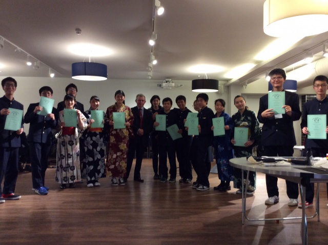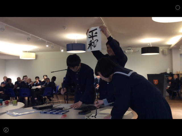 2017年03月30日(木) 英国研修 < 国際交流(研修) < 過去のニュース 2017英国研修(10) 本日はダートフォード滞在最終日であったので、お別れパーティーを行いました。大勢の前で英語を話すことに慣れていない生徒もいるので少し緊張していましだが、堂々と話していました。書道や着物など日本の文化や芸術を紹介し、あちらの方々にも体験してもらい素晴らしい交流となりました。この滞在を通して得た自信にあふれた表情がとても印象的でした。まだまだ名残惜しい気持ちがありますが、明日は朝六時に集合です。