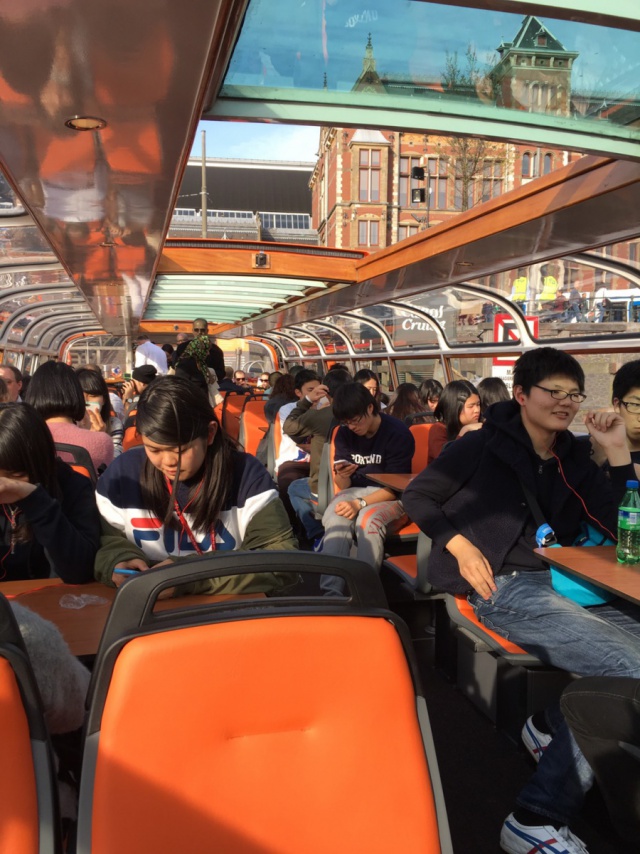 2017年03月31日(金) 英国研修 < 国際交流(研修) < 過去のニュース 2017英国研修(11) いよいよダートフォードを出発する朝がやってきました。ホストファミリーとのお別れに寂しくて、なかなかバスに乗り込めない生徒もいましたが、感謝を述べて空港へと向かいました。この滞在が彼らにとって素晴らしいものであったのだと改めて感じました。 無事にアムステルダムに到着し、お昼ごはんを食べてから、運河クルーズをしました。日本との街並みの違いに驚いていました。明日は日本に向けて出発です。