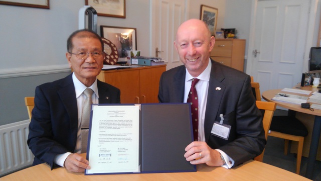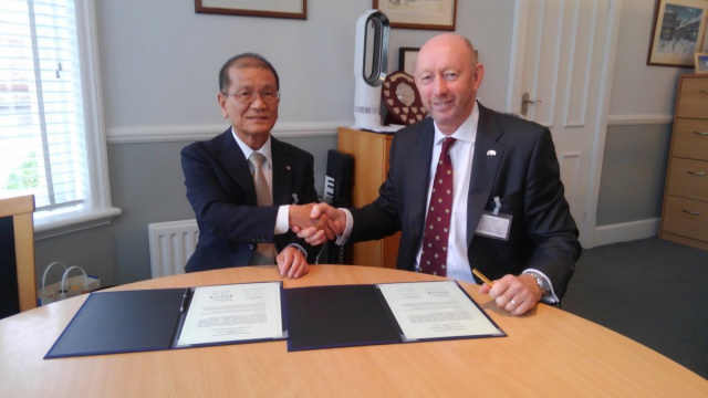 9月8日(金)、英国の伝統校 Dartford Grammar School の W J Oakes 校長先生と、開智中学校・高等学校 近藤学校長が、交流校としての覚書を交わし、調印しました。