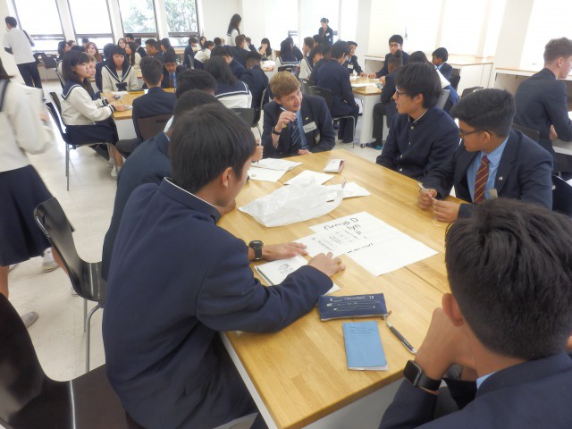 10月25日(水)、英国からDartford Grammar School(以下DGS)が来校し、終日かけて交流を行いました。今年、DGSと本校の交流は10周年を迎えます。そんな記念すべき年に30名の学生が開智に来てくれました。開智ホールでの歓迎式では、校長先生から両校の「縁」を大切にするようにとウェルカムスピーチがありました。また、生徒会長も英語で歓迎の挨拶を行いました。