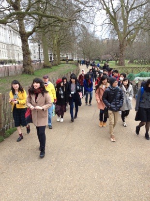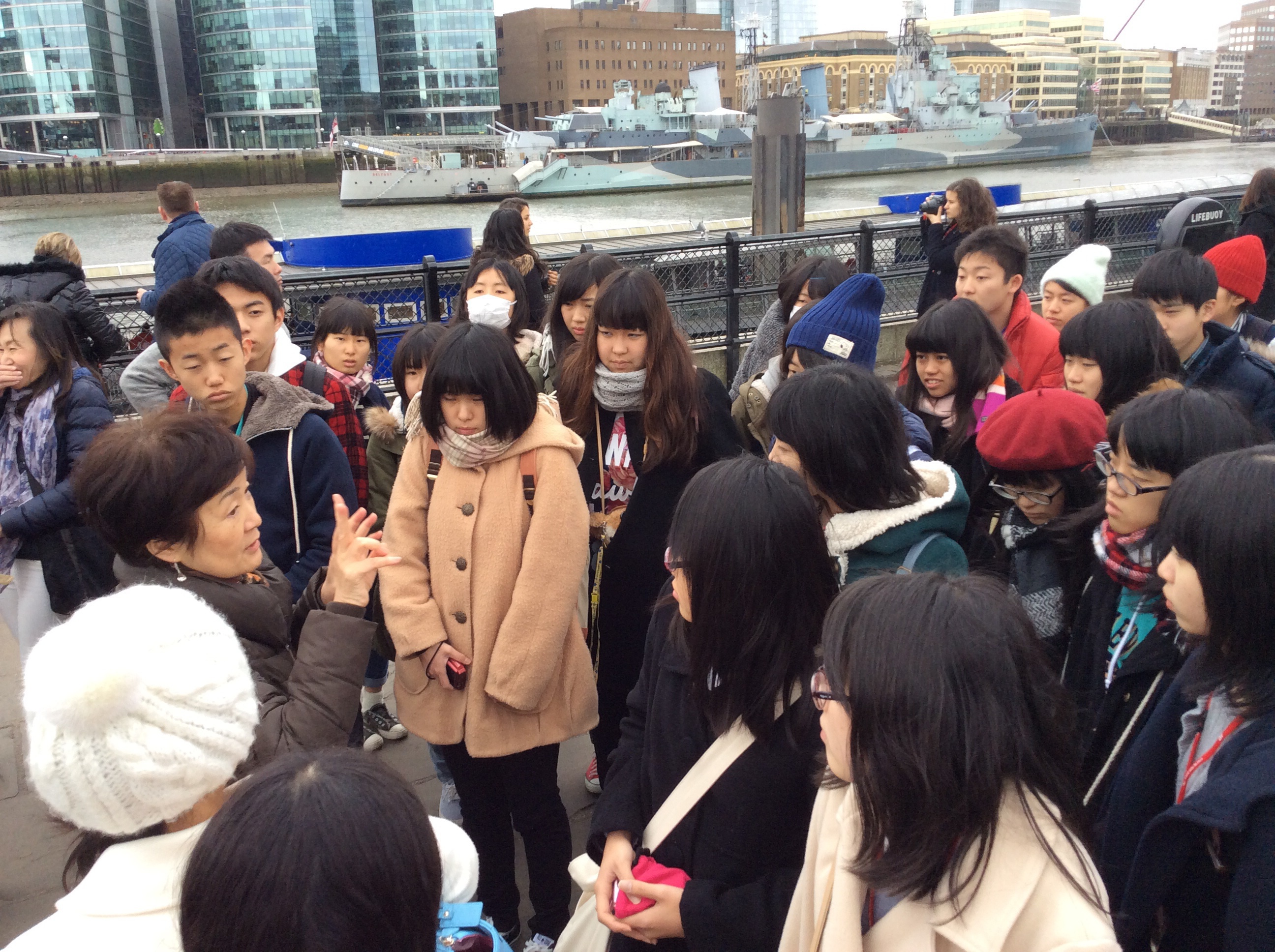 2015年03月22日(日) 英国研修 < 国際交流(研修) < 過去のニュース 英国研修(3日目) 英国研修3日目、本日はロンドン1日研修です。 英国政府公認ブルーバッチ観光ガイドのタイヴァース由美子さんと共に、ロンドン塔やセントポール大聖堂、バッキンガム宮殿、ビックベン、ロンドンブリッジなど非常に盛りだくさんの1日でした。 バッキンガム宮殿では、運良く衛兵交代を見ることができ、生徒たちは大興奮。夢のような1日でした。