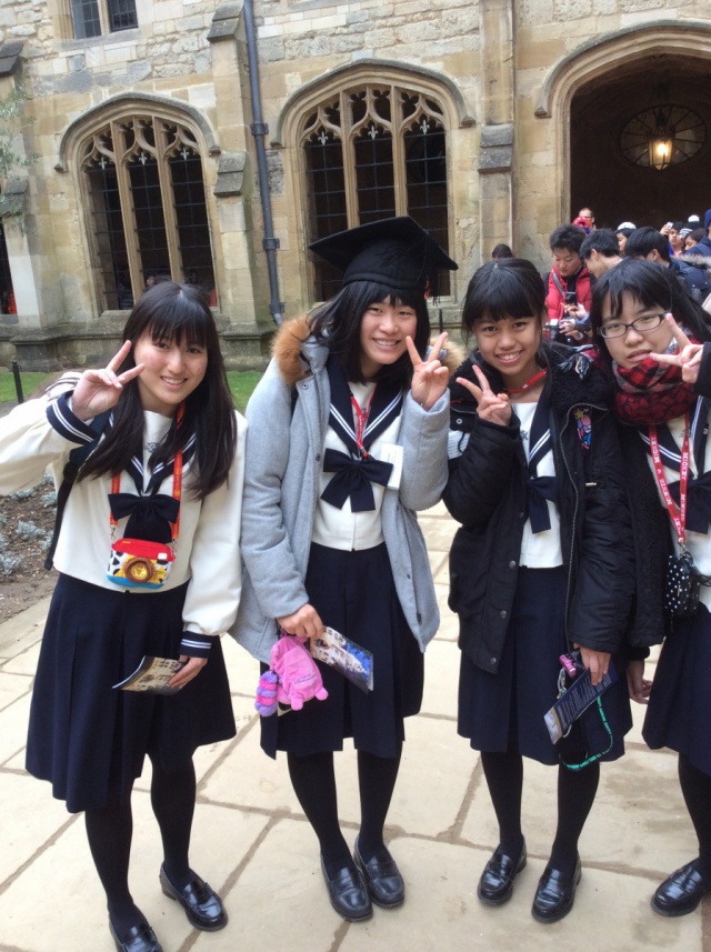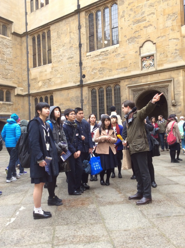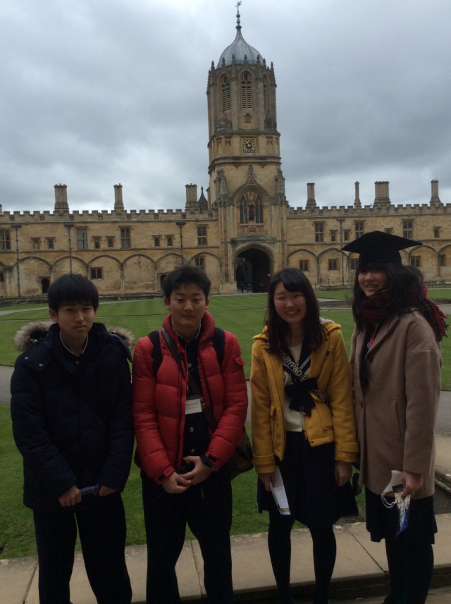 2015年03月29日(日) 英国研修 < 国際交流(研修) < 過去のニュース 英国研修(10日目) 本日は、オックスフォード大学を訪問しました。 私たちが訪問したのは、オックスフォード大学内にあるChrist Church College. オックスフォードの大学生に案内されて、キャンパス内を見学しました。ハリーポッターで撮影された有名な場所にも行くことができ、生徒たちは大興奮でした。 午後からは大学生たちとの交流会。生徒たちは積極的に質問し、世界最高峰の学生たちとすばらしい交流時間を過ごすことができました。