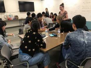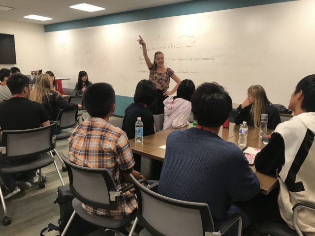 2018年08月24日(金) グローバルリーダー研修in Boston < 国際交流(研修) < 過去のニュース グローバルリーダー研修 in Boston[第3回モーニングセッション] 第3回モーニングセッションが始まりました。生徒たちは日本との時差にも慣れ、精力的に取り組んでいます。講師のジュリアさんから、「この講義で大切なことは、リーダーシップには様々な形態があり、自分なりのリーダーシップとは何かを考えることである」との説明を受け、生徒たちはグループ内のメンバーの考えを共有して、他者との比較を通して自分をより理解してセッションを進めています。