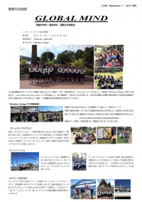 2017年09月11日(月) Global Mind < 国際交流(研修) < 過去のニュース Global Mind 第22号 オーストラリア語学研修 平成29年8月1日(火) ~ 8月14日(火) ← 拡大表示・プリントアウトをされる方は、左のアイコンをクリックしてください。