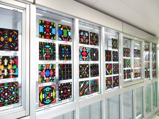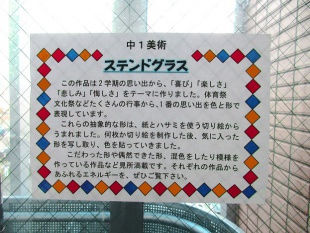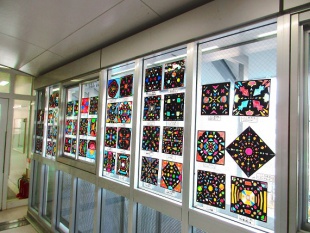 2015年12月26日(土) 全校 < 過去のニュース 三者懇談会 ステンドグラス(中1美術) 24日から26日にかけて、冬休みを前にした三者懇談が行われました。 生徒の皆さんにとって、二学期の成績や生活について振り返るよいきっかけになったのではないでしょうか。 課題や目標を新たに設定して、三学期も頑張りましょう。 また、中学一年生が美術の授業で制作した「ステンドグラス」が展示されました。 中学校棟への渡り廊下が、柔らかで繊細な光につつまれています。