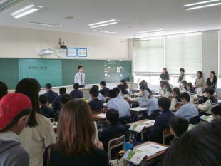 大勢の保護者の方々に見守られながらの授業に、子どもたちは初めは緊張した面持ちでしたが、真剣な眼差しで、時には楽しそうに笑い声をあげながら、先生方の話に耳を傾けていました。