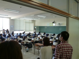 本校は数年前よりICT(Information and Communication Technology)の設備を整えました。今日の公開授業でもほとんどの教室でプロジェクターを使った授業が行われていました。