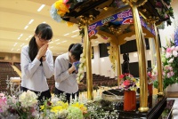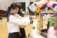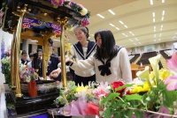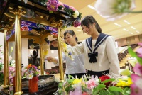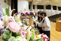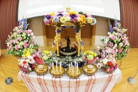 花まつり法要が行われた後に、生徒たちは花御堂に向かい、