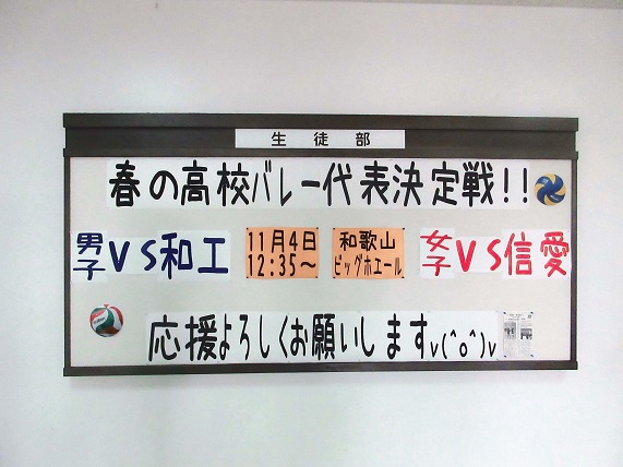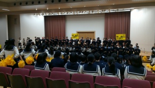 2016年11月02日(水) 全校 < 過去のニュース 春の高校バレー県大会決勝戦応援練習 来る11月4日に春の高校バレー和歌山県大会決勝戦が開催されます。 本校バレー部は、男女ともに決勝戦に進出しています。 本日は、決勝戦に向けて、応援練習を行いました。 みんな、リズムに合わせて大きな声を出して、応援の練習していました。 決勝当日は、男女ともに全国大会への切符をつかみとれるよう、開智のみんなで、一致団結して開智バレー部を応援しましょう。