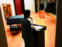 新任式では、開智ホールの舞台に6名の新任の先生方が登壇され、一人一人の先生からの挨拶がありました。