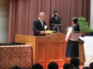 一、表彰状授与 一、式歌斉唱「仰げば尊し」「蛍の光」