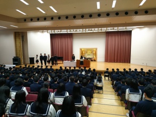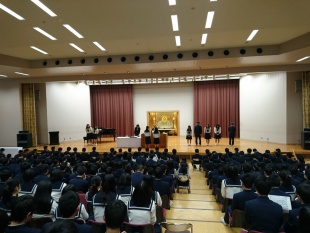 日頃から「真面目・素直・謙虚」に、果敢に目標に向かってチャレンジするとともに、自らの持ついいところを出せるように、自分を大切にする行動ができたかを振り返ること。また、周りへの感謝の気持ちを忘れずに行動し、これからも人として成長をつづけられるよう、向上心を持って行動して下さいと、生徒たちに話されました。今後も心に留め、気をつけていきましょう。
