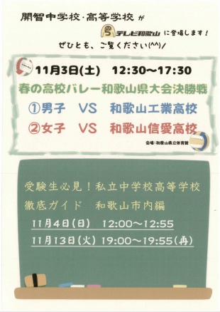 「受験生必見!私立中学校高等学校徹底ガイド 和歌山市内編」が放送されます。