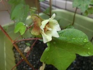 花は3枚の包葉につつまれた状態で出現し,徐々に5枚の花弁(花びら)からなる花が展開します。