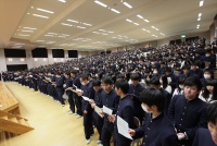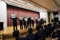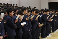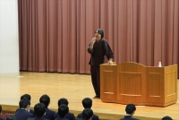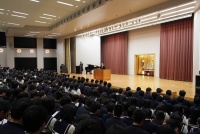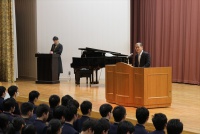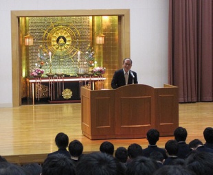 本日は成道会という宗教行事を行いました。まずは学校長によるお話がありました。