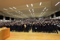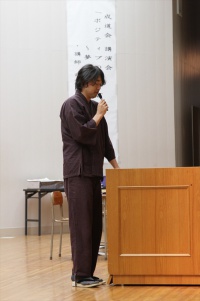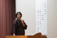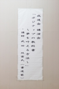 第1部は音楽法要を行いました。第2部は書道家の武田双雲氏にご講演いただきました。自分の考え方を変えるだけで毎日が楽しく前向きになれる方法や、ビジョンの描き方のコツを教えていただきました。