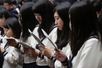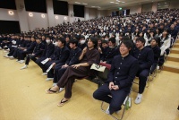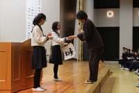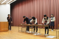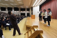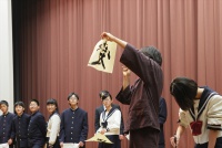 後半は生徒たちと書道大会!みんな緊張で手が震えながらも、集中して素晴らしい書を完成させていました。書は一人一人みんな違っているそうです。書道の奥深さを改めて知る良い機会となりました。双雲さん、本日は貴重なお話と体験をさせていただき、ありがとうございました。