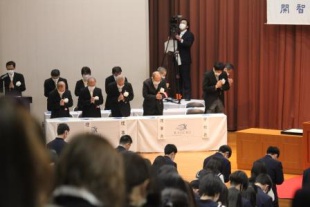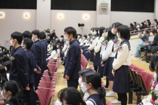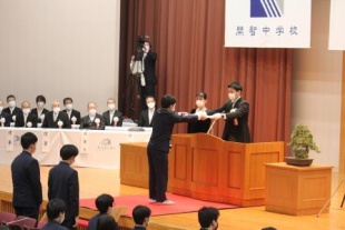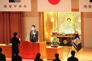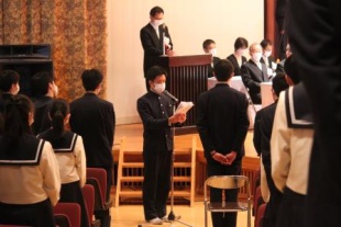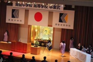 2022年03月01日(火) 全校 < 過去のニュース 令和3年度 卒業式 ■令和3年度卒業証書授与式 令和4年3月1日、本校開智ホールにて、 令和3年度卒業証書授与式を挙行いたしました。 式次第 一、開式の辞 一、育友会長式辞 一、献灯献香献華 一、校友会長式辞 一、卒業証書授与 一、在校生送辞 一、表彰状披露 一、卒業生答辞 一、学校長式辞 一、閉式の辞 開式の辞 献灯・献香・献華 合唱・礼拝 卒業証書授与 卒業証書授与 学校長式辞 育友会長祝辞 校友会長祝辞 在校生送辞 卒業生答辞 閉式の辞