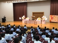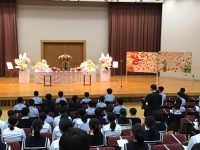 校長先生から夢を持つことの大切さ、そして「花まつり」がそれぞれの夢の実現の一歩になればとお話しして頂きました。また、法話では宗教科の先生から命の大切さ、感謝の心があると自然とありがとうという言葉が出てくるというお話をして頂きました。