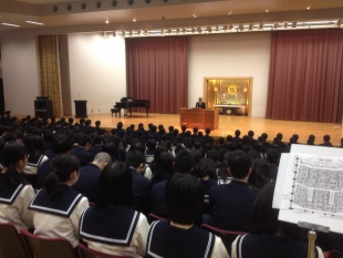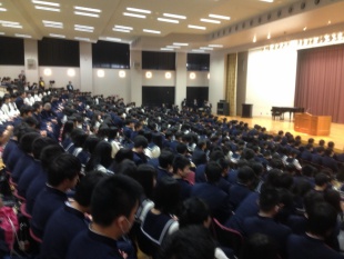 2015年04月04日(土) 全校 < 過去のニュース 新任式・始業式・クラス担任発表 本日は新任式と始業式。生徒会長より、新任の先生方に代表のあいさつをさせていただきました。 校長先生より新年度からの生活について激励の言葉を頂いた後は、教務部長から新しい学年の「学年主任・担任・副担任」の発表がありました。生徒達は新しいHR教室に移動してクラス開きです。