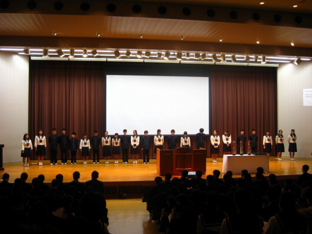 司会は前年度優勝した生徒達が英語で執り行い、今年度もこの日のために多くの時間を練習に費やして励んできた各学年の生徒達が皆の前で堂々と発表しました。