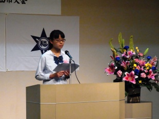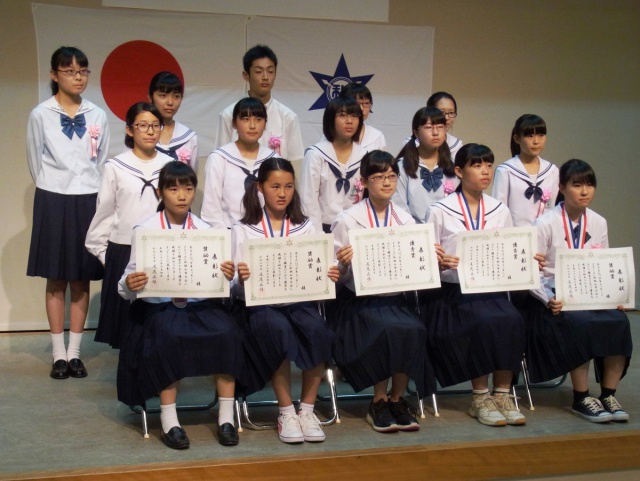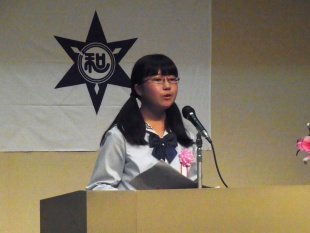 2016年06月06日(月) 中等部 < 過去のニュース 少年メッセージ2016 6月4日(土)和歌山市あいあいセンターにて、『少年メッセージ2016』和歌山市大会が開催されました。 『少年メッセージ』は、日頃感じていることや、社会に対する提言などについての作文です。和歌山市内中学生が書いた約1500作品の中から15作品が選ばれました。本校からは2年生 北口莉子さん、3年生 齋藤零さんの2名の作品が選ばれ、それぞれ自分の作品を堂々と発表してくれました。