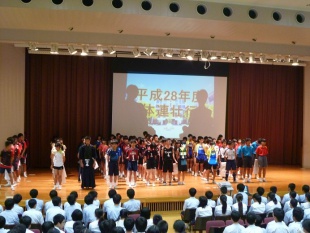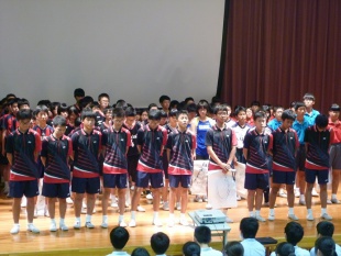 2016年07月06日(水) 中等部 < 過去のニュース 中体連壮行会 定期考査終了後、中体連壮行会が開智ホールで行われました。各クラブ員達が、壇上で力強い決意表明をしてくれました。中学3年生は中学最後の試合です。自分を信じて、今までで最高のプレーをしてきてください。2年生や1年生も、一生懸命先輩について練習してきた成果を試合で出してきてください。