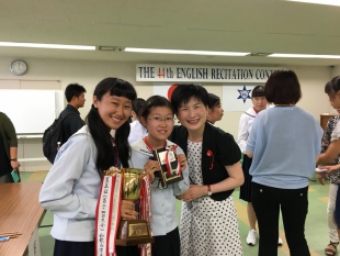 2016年10月03日(月) 中等部 < 過去のニュース 中学生英語暗唱大会 9月24日(土)和歌山市役所にて、「第44回 中学生英語暗唱大会」が開催され、 本校中等部2年生から、原 紗理さん、高屋 琴愛さんの2名が出場し、 緊張のなか、「A Mother's Lullaby」の暗唱を堂々と発表してくれました。 30名の出場者の中から、原紗理さんが3位、高屋琴愛さんが審査員特別賞をそれぞれ受賞しました。
