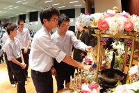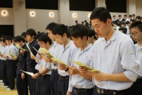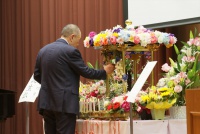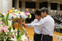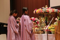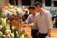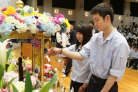 2017年05月10日(水) 中等部 < 過去のニュース 花まつり 4限目、開智ホールにて、お釈迦様の誕生をお祝いする花まつりが行われました。音楽法要と、本校の理事長より講話がありました。お釈迦様が生まれた経緯や、開智25周年を記念して開智生へチャレンジしてほしいという熱いメッセージをいただきました。その後、クラス代表の生徒たちがお釈迦様に甘茶をかける灌頂を行いました。開智生の皆さん、お釈迦様の教えを胸に、また失敗を恐れずチャレンジする心を持ちながら、がんばってください。 ダイジェスト版