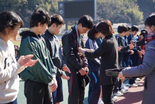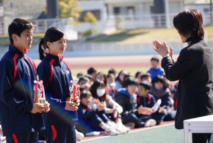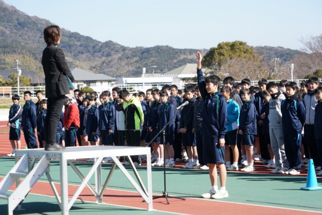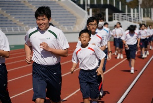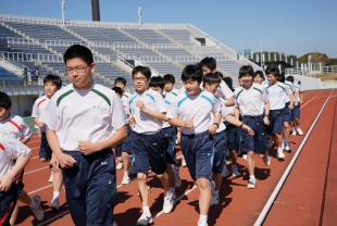 2018年02月14日(水) 中等部 < 過去のニュース 中学校マラソン大会 本日、紀三井寺競技場にて、中学校マラソン大会が行われました。 爽やかな晴天のもと、体育委員長が、選手宣誓をおこないました。 まずは、女子からのスタートです。 女子は、トラック一周を走った後、外周へと向かいます。 外周2周回ったあとは、トラック100メートルでフィニッシュです。 みんな全員、走りきりました。 続いて男子のスタートです。 男子は、トラック2周回ったあとに、外周へと向かいます。 途中、苦しい表情もありましたが、大きな怪我もなく、無事全員走りきりました。 お疲れ様でした。今日は、ゆっくり休んでくださいね。
