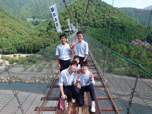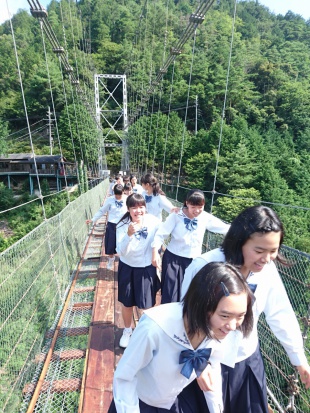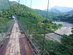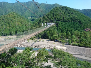 かなり高いつり橋なので、びくびくしながら渡ります。