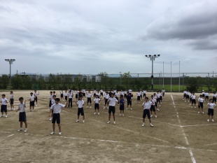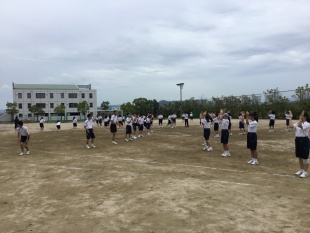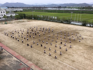 2018年09月12日(水) 中等部 < 過去のニュース 中学校体育祭 準備 今週から3学年そろっての体育祭の練習が始まっています。 3年生が根気強く1、2年生にダンスを教えています。 今日は午後から小雨が降り出しましたが、元気に頑張っています。