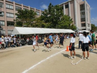 2019年09月21日(土) 中等部 < 過去のニュース 中学校 体育祭 選手宣誓 行進演奏 短距離 二人三脚 ムカデリレー 台風の目 宅配便リレー 宅配便リレー 長縄飛び シーソーボール 放送・計セン 山あり谷あり タイヤ クラス対抗 青ブロック 黄ブロック REDブロック 緑ブロック クラブ対抗リレー(文化系) クラブ対抗リレー(体育系女子) 剣道 クラブ対抗リレー(体育系男子) 綱引き 玉入れ(女子) 騎馬戦(男子) ブロック対抗リレー よさこい 本日,中学校体育祭が開催されました。 天候が危ぶまれましたが,何とか全競技を実施することができました。 競技・応援合戦・よさこいなど,練習の成果は発揮できましたか。 よい思い出になったらよかったです。