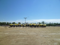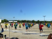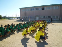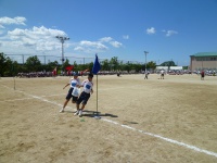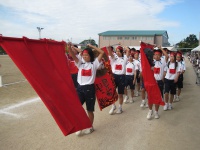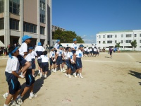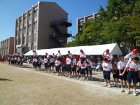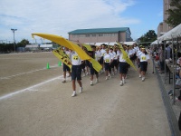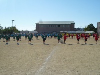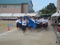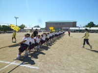 まずは入場行進から始まりました。青組、黄組、赤組、緑組の順番に入場してきました。