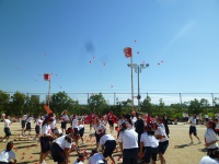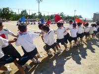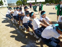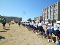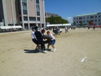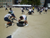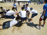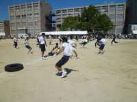 7つのタイヤを奪い合います。かなり激しい競技で引きずられて砂だらけになっている生徒もいました。