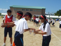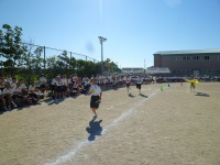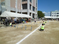 途中で棒が足に当たってしまう生徒もいましたが、一生懸命走りました。